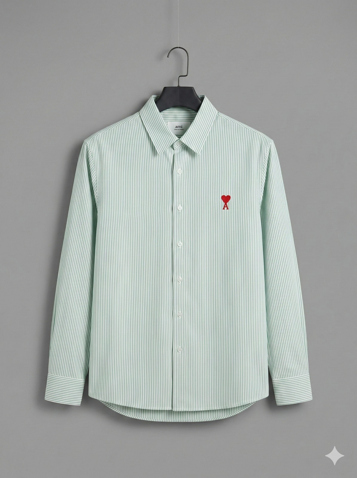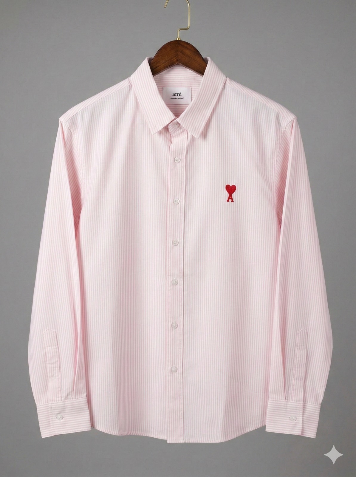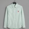 Description: A modern classic with subtle charm, the Heart Emblem Pinstripe Shirt features fine vertical stripes and a minimalist red heart motif on the chest. Crafted from premium cotton, it’s tailored for effortless smart-casual styling.