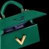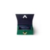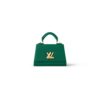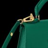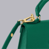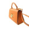 This structured mini handbag blends timeless design with a modern twist. Crafted from premium pebbled leather, it features a sleek silhouette with a bold V-shaped metallic clasp that adds elegance to its compact form. The secure flap opening reveals a well-organized interior with card slots, ideal for essentials.